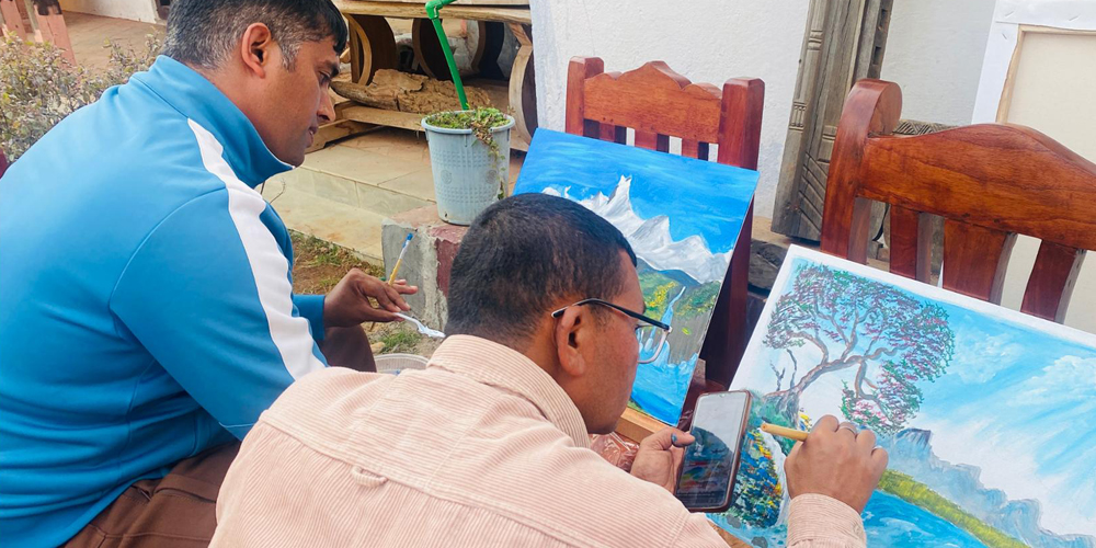 कोही पिँढी त कोही आँगनमा बसेर कुची र रङ्गसँग खेल्दै थिए । प्रकृति र जीवनका अनेक भावभङ्गीलाई उनीहरुले क्यानभासमा उतारे । आइतबार पर्वतको कुश्मास्थित शताब्दी घर कलामय बन्यो । एकै थलोमा अनुजदेखि अग्रज कलाकारको जमघट भयो ।