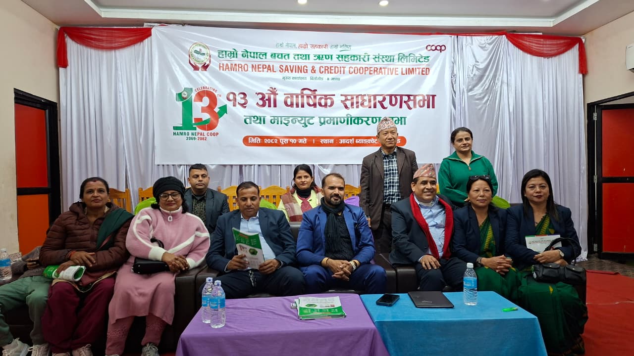 झापा । झापाको बिर्तामोडमा मुख्य कार्यालय रहेको हाम्रो नेपाल बचत तथा ऋण सहकारी संस्था लिमिटेडको १३औँ वार्षिक साधारणसभा बिहीबार सम्पन्न भएको छ।