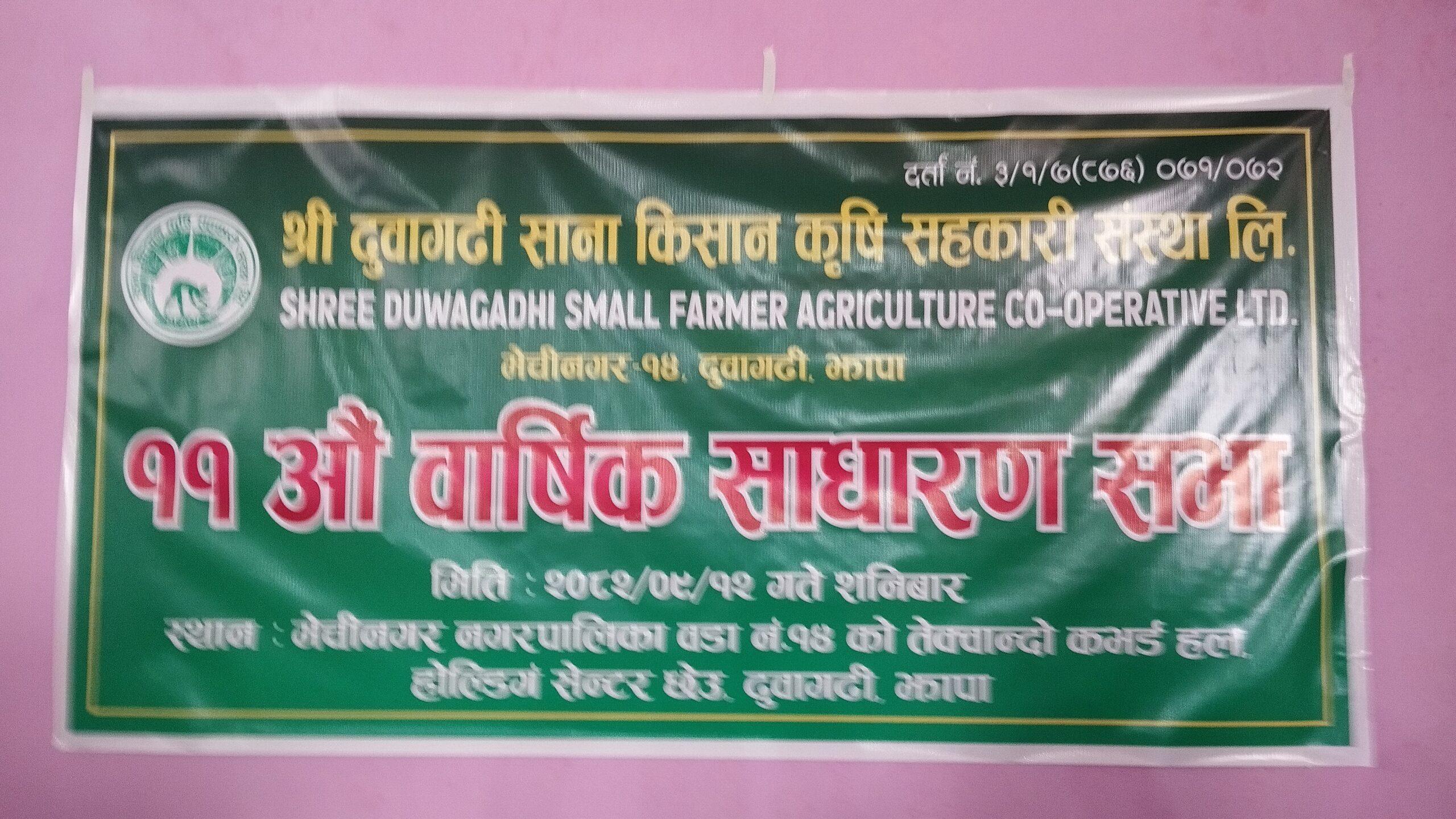 झापाको चारआलीस्थित दुवागढी साना किसान कृषि सहकारी संस्थाको ११औं वार्षिक साधारणसभा सम्पन्न भएको छ ।