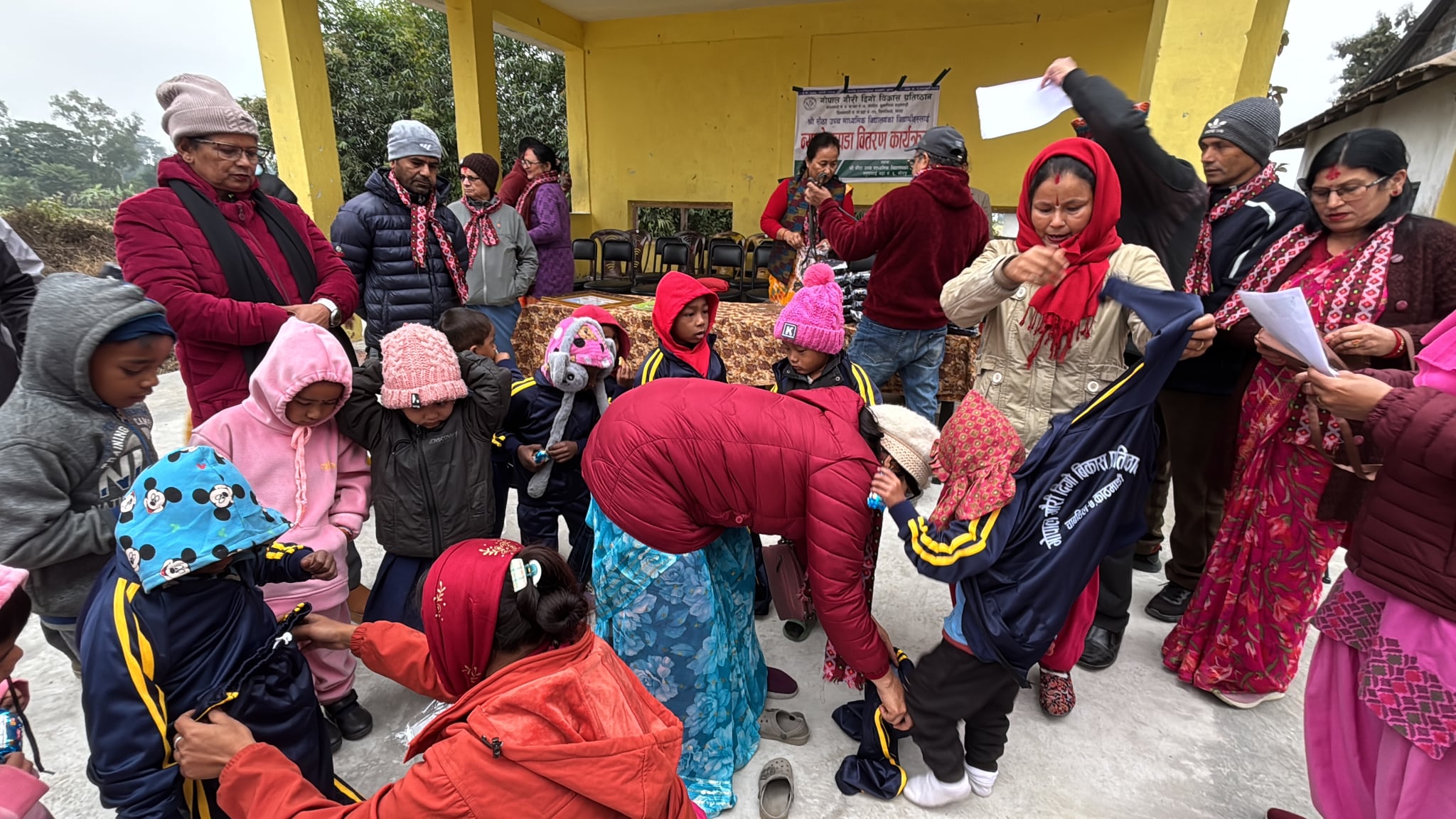 मोरङ । गोपाल गौरी दिगो विकास प्रतिष्ठान केन्द्रले मोरङको रतुवामाई नगरपालिका–६ स्थित सौठा माध्यमिक विद्यालयका नानीबालिकालाई न्यानो पोषाक वितरण गरेको छ। प्रतिष्ठानले नर्सरीदेखि कक्षा ५ सम्म अध्ययनरत ६२ जना विद्यार्थीलाई निःशुल्क पोषाक उपलब्ध गराएको हो।