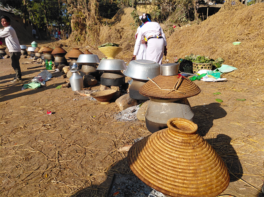 ढिक्री बनाउन व्यस्त थारू समुदाय