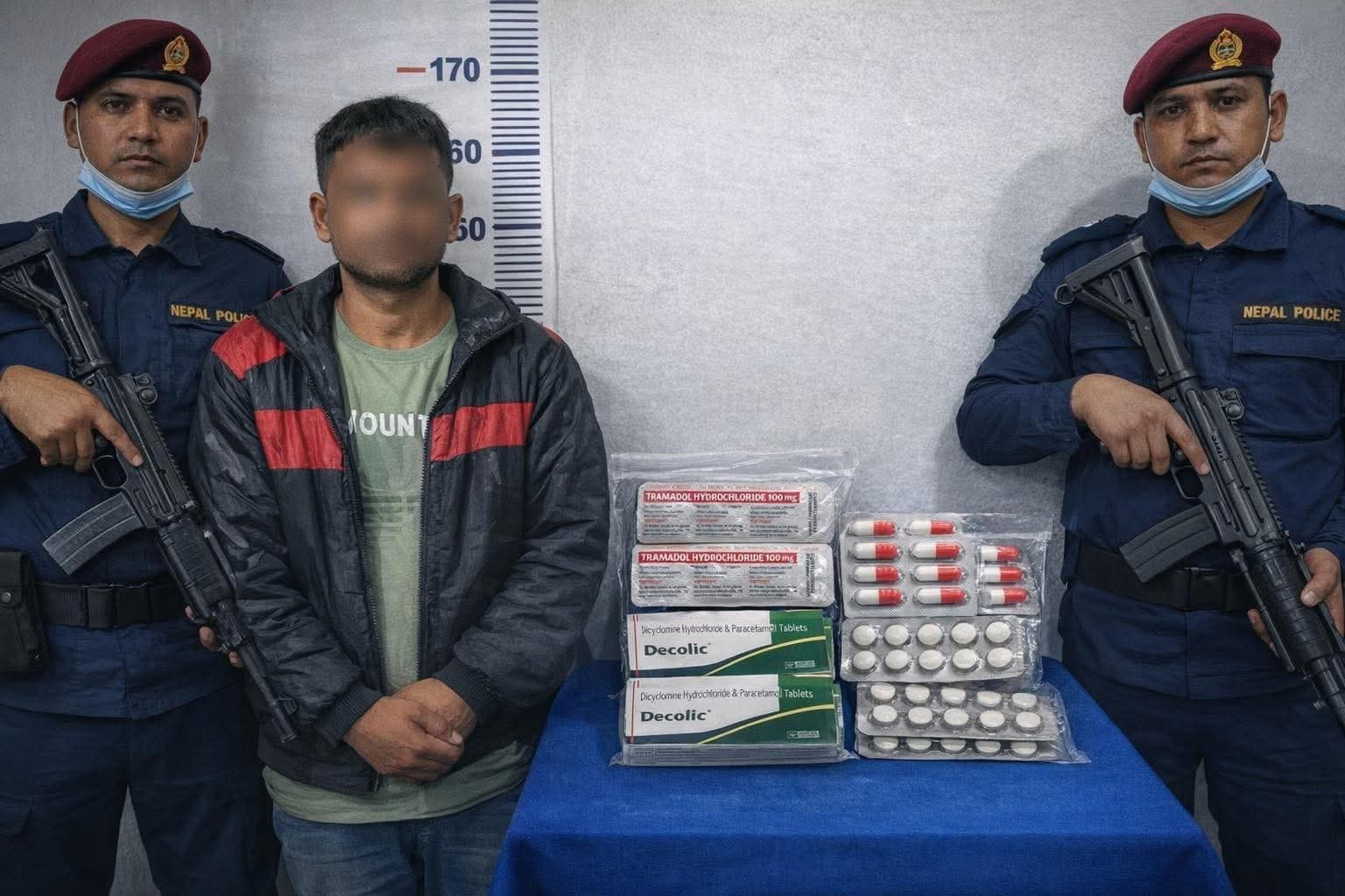 विश्वकर्माको शरीर चेकजाँच गर्दा Tramadol Hydrochloride Capsules (Tramol–50) का ४९ पत्ता, जम्मा ४९० क्याप्सुल तथा Dicyclomine Hydrochloride Tablets (Decolic) का ४९ पत्ता, जम्मा ४९० ट्याब्लेट इलाका प्रहरी कार्यालय लेटाङबाट खटिएको प्रहरी टोलीले बरामद गरेको थियो।