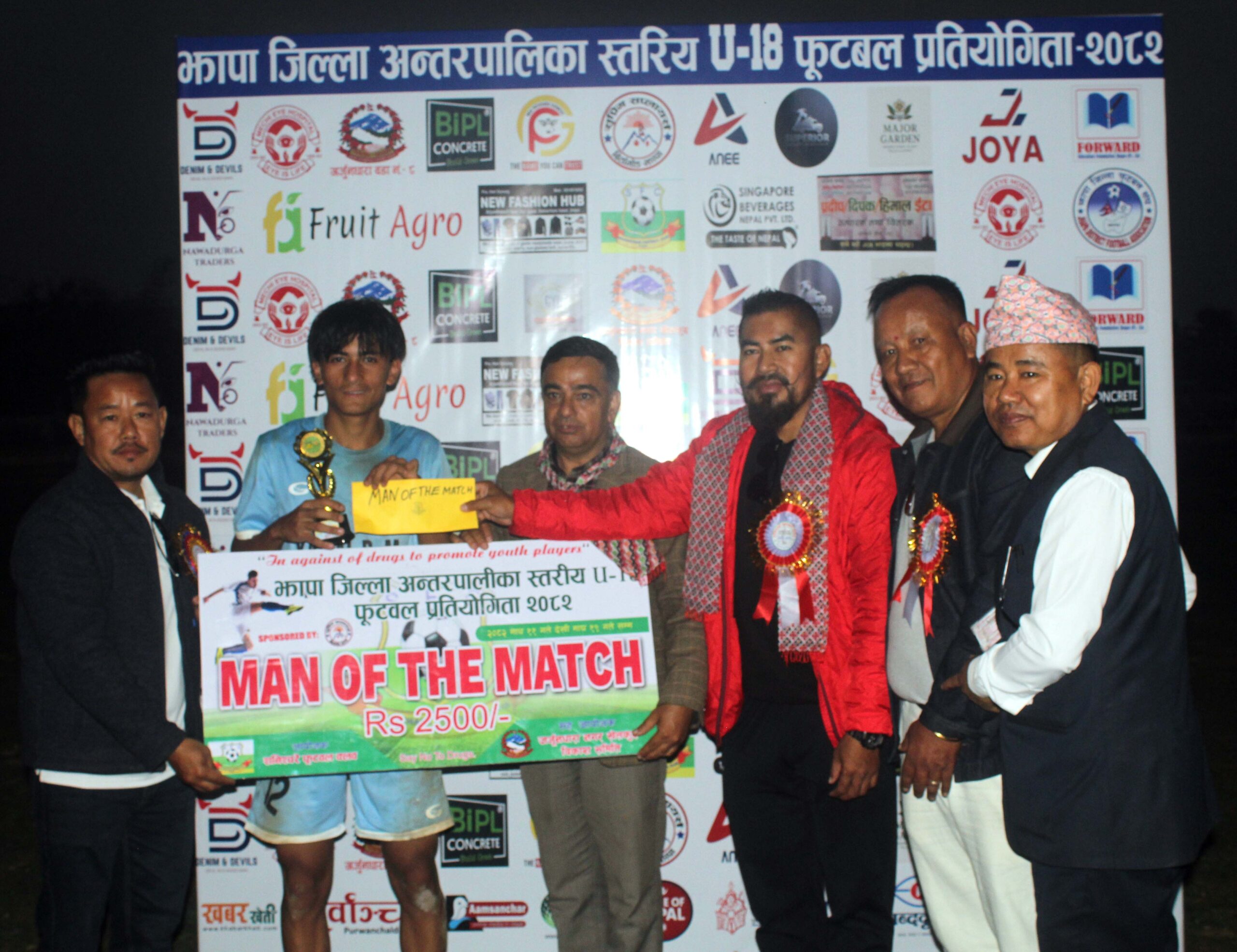 लागूऔषध बिरुद्ध युवा खेलाडीहरुको प्रबद्र्धन गर्ने उद्देश्यले झापाको अर्जुनधारा नगरपालिकामा आइतबारदेखि अन्तरपालिका यु–१८ नकआउट फुटबल प्रतियोगिता–२०८२ सुरु भएको छ ।
