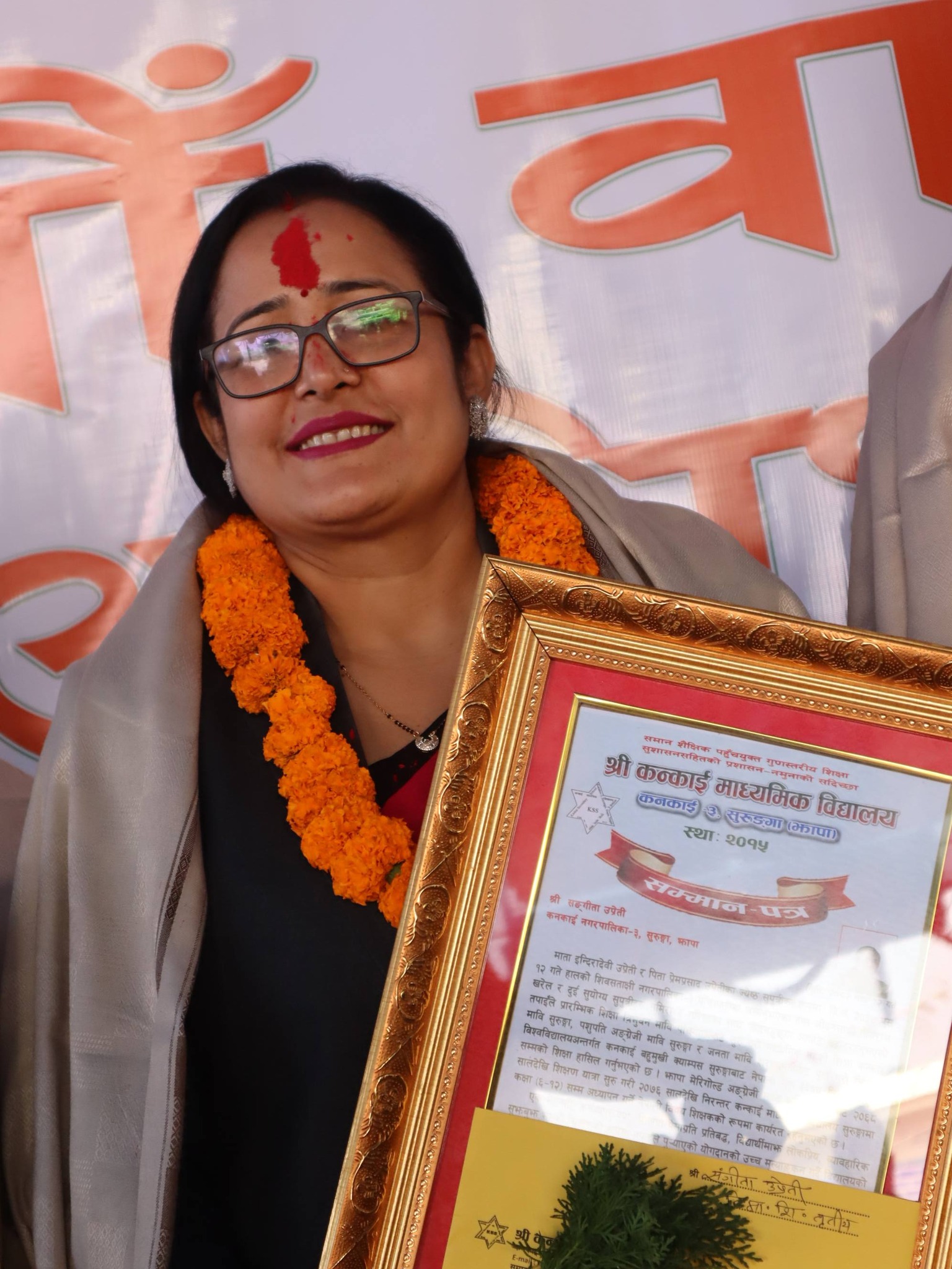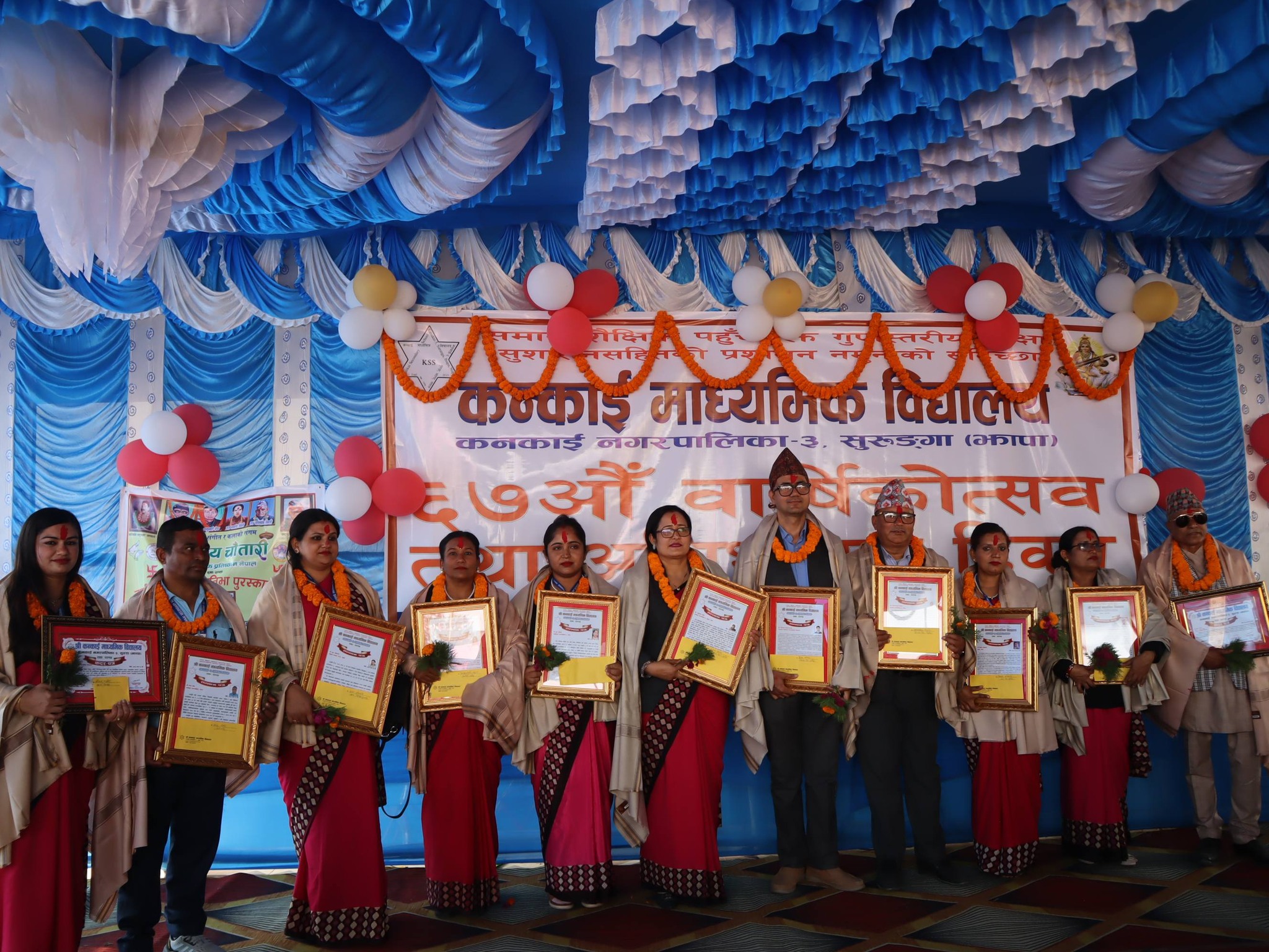 उनीहरूलाई प्रमुख अतिथि स्थानीय सरकार कनकाई नगरपालिकाका प्रमुख राजेन्द्रकुमार पोखरेल र विशेष अतिथि कनकाई नगरपालिका नगर शिक्षा, युवा तथा खेलकुद शाखा प्रमुख राजकुमार ओडारीले सम्मान गरेका थिए ।
