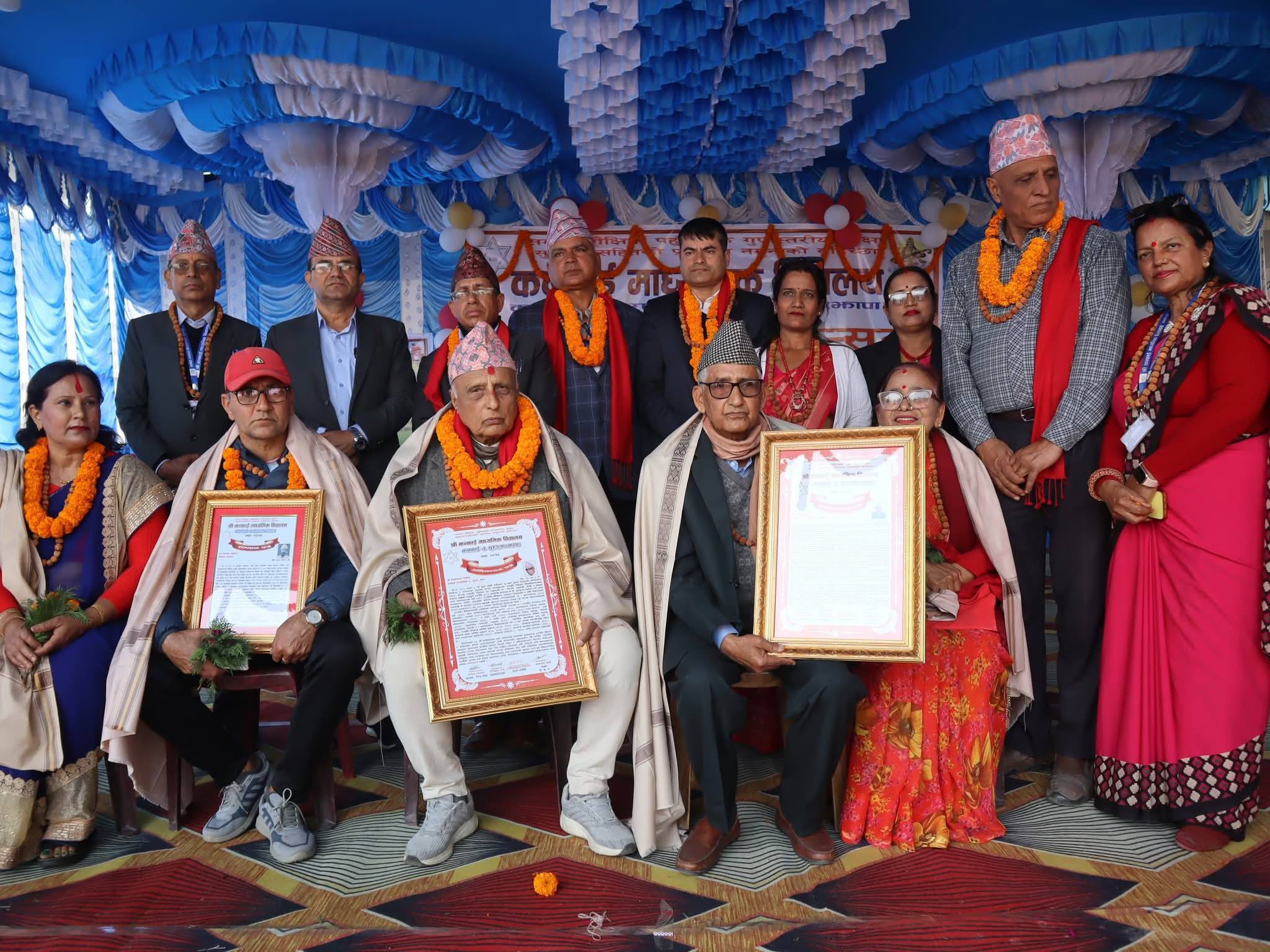 विद्यालय व्यवस्थापन समिति महासङ्घ नेपालका केन्द्रीय सदस्य एवम् विद्यालय व्यवस्थापन समितिका अध्यक्ष चन्द्रप्रसाद प्रसाईंको अध्यक्षतामा भएको कार्यक्रममा विद्यालयका पूर्व प्रधानाध्यापक एवं विद्यालय व्यवस्थापन समितिका पूर्व अध्यक्ष, अग्रज साहित्यकार कोमलप्रसाद पोखरेल र पूर्व अध्यक्ष तथा सल्लाहकार संयोजक जनार्दन उप्रेतीलाई उनीहरूले गरेको विशिष्ट योगदानका लागि अभिनन्दन गरिएको थियो ।