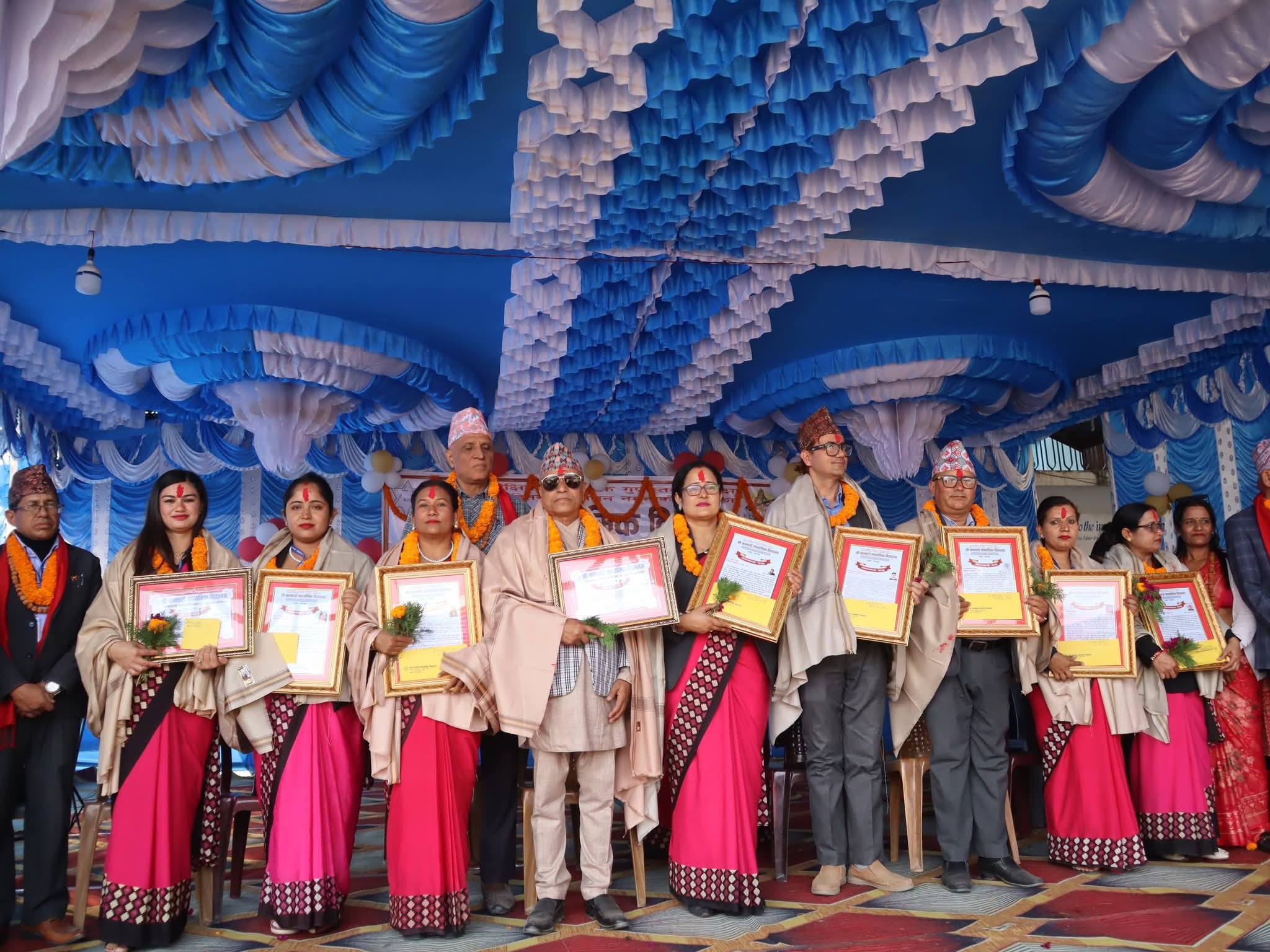 सो अवसरमा शिक्षकहरू मन्दिरा सुवेदी, बिमला अधिकारी, अम्बिकाप्रसाद रिजाल, मोहन खतिवडा, सङ्गीता उप्रेती, निर्मलादेवी भट्टराई, पूजा न्यौपाने, जुना अधिकारी, शीतल रेग्मी र कर्मचारी नारद श्रेष्ठलाई सम्मान गरिएको थियो । सो कार्यक्रममा सञ्चारकर्मी ठोसखबर अनलाइनका सम्पादक चूडामणि तिम्सिना (सीएम) लाई पनि सम्मान गरिएको थियो । सबै शिक्षक, कर्मचारी र सञ्चारकर्मीलाई जनही ५ हजार नगद, दोसल्ला र सम्मानपत्रले सम्मान गरिएको थियो ।