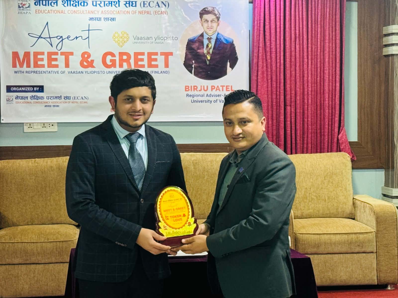 नेपाल शैक्षिक परामर्श संघ (इक्यान) झापाको आयोजना तथा आईडीबी ग्लोबलको सहकार्यमा भएको एजेन्ट मिट एण्ड ग्रिट कार्यक्रममा फिनल्याण्डका विश्वविद्यालयको बारेमा जानकारी दिइएको थियो । फिनल्याण्डमा विद्यार्थीका लागि छात्रवृत्ति, जागिरको अवसर, वर्क भिसा, डिपेन्डेन्ट सुविधा, पीआर प्राप्ति लगायत विषयमा युनिभर्सिटी अफ भाषाका दक्षिण एसिया रिजनल एडभाईजर बिर्जु पट्टेलले जानकारी गराएका थिए ।