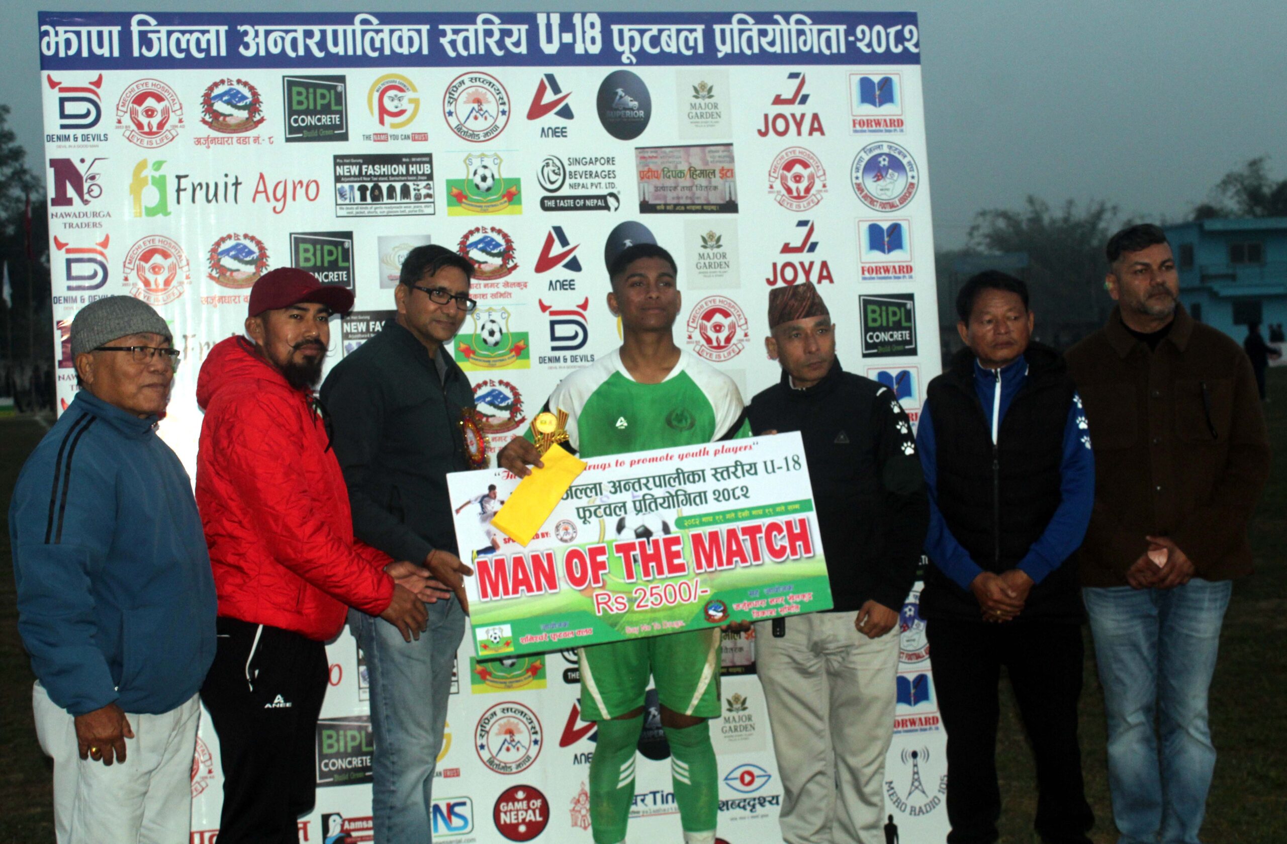 विजयी टिम बुद्धशान्तिका गोलरक्षक रीजन ल्वागुन खेलको उत्कृष्ट खेलाडी भएका थिए । उनलाई कार्यक्रमका प्रमुख अतिथि स्थानीय बिल्डकन इण्डष्ट्रिज प्रा.लि.का प्रबन्ध निर्देशक नविन गट्टानी, अर्जुनधारा–८का वडाध्यक्ष कुमारप्रसाद उप्रेतीलगायतले नगद पुरस्कार दुई हजार पाँच सयसहित ट्रफी प्रदान गरेका थिए । उक्त पुरस्कार बिर्तामोडस्थित सुप्रीम सप्लायर्सले सौजन्य गरेको हो ।