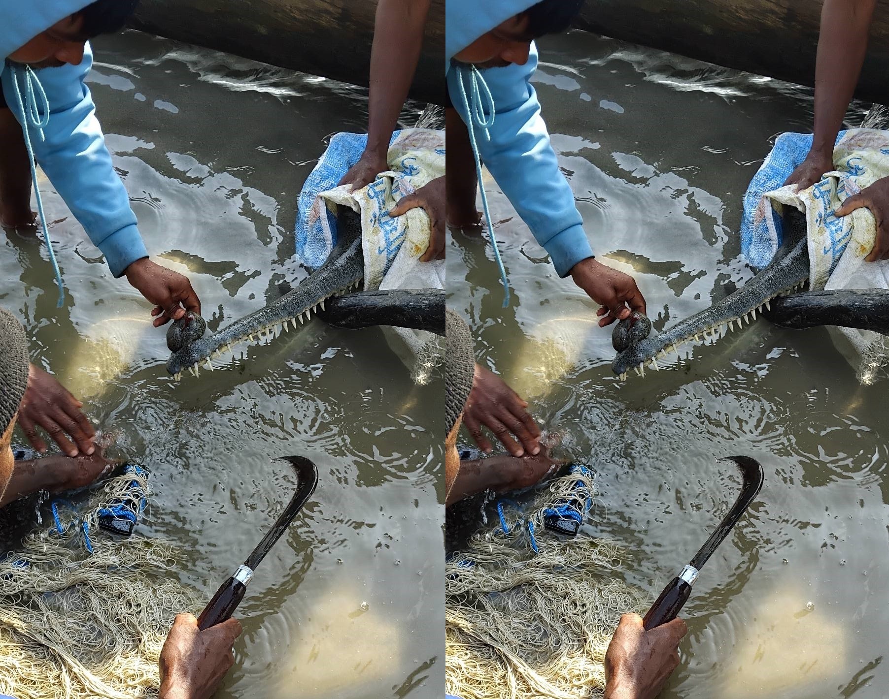 चितवन राष्ट्रिय निकुञ्जका संरक्षण अधिकृत एवं सूचना अधिकारी अविनाश थापा मगरले लगातार चार दिनको प्रयासपछि बुधबार दिउँसो गोहीको मुखबाट तियारी जाल हटाउन सकिएको जानकारी दिनुभयो । “स्थानीय गोपाल बोटेको सक्रियतामा निकुञ्जका कर्मचारी तथा स्थानीय बासिन्दाको सहयोगले चार दिनपछि भाले गोहीको उद्धार गर्न सफल भयौँ”, उहाँले भन्नुभयो, “मुखमा तियारी जाल बेरिएको थियो, जाल काटेर गोहीलाई नदीमा छाडिएको छ ।”