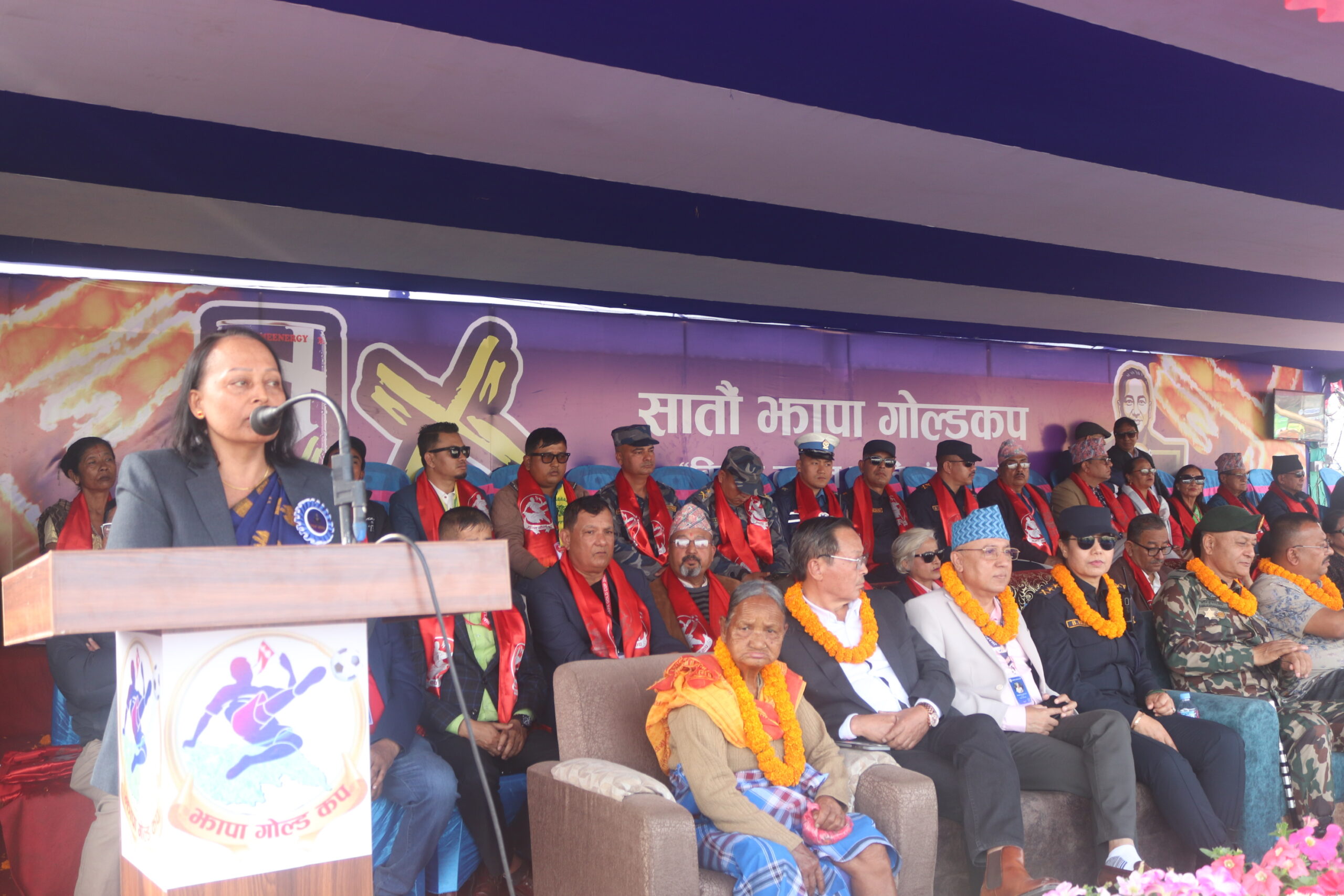 नेपालकै उत्कृष्ट खेल मैदान डोमालाल राजवंशी रंगशाला भएको बताउँदै उनले गोल्डकपका संरक्षक जलकुमार गुरुङले झापा गोल्डकपले नेपालको फुटबललाई अन्तर्राष्ट्रिय क्षेत्रमा चिनाउन सफल हुँदै गएको बताए ।