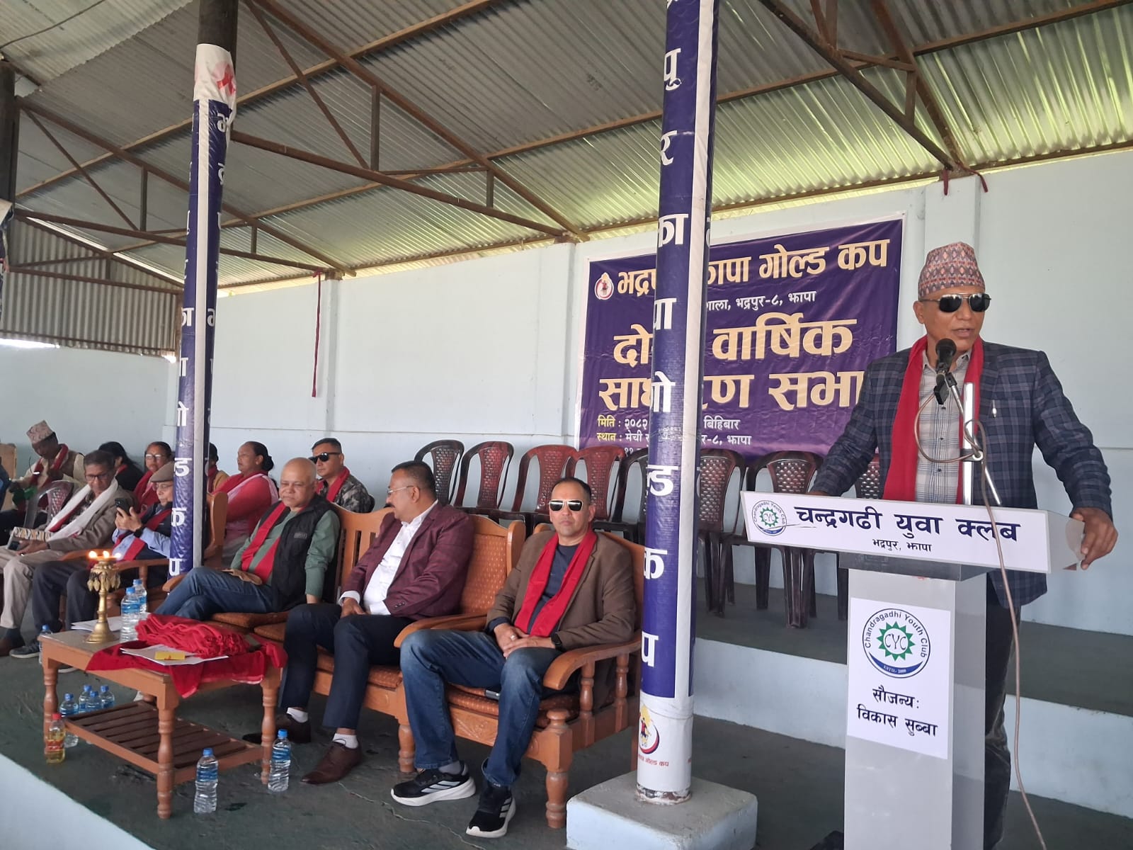 भद्रपुर ८ स्थित मेची रंगशालाको कभर्डहलमा गोल्डकपका अध्यक्ष दिपेश ढकालको अध्यक्षतामा आयोजित साधारणसभाको भद्रपुर नगरपालिकाका नगरप्रमुख गणेश पोखरेलले उद्घाटन गरेका थिए ।