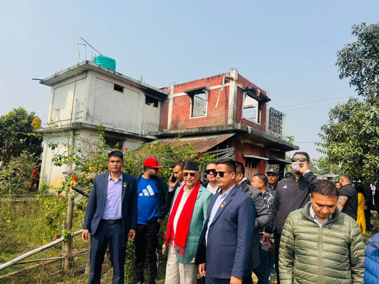 काठमाडौं फर्किने क्रममा अध्यक्ष ओली जलेको घर हेर्न श्रीमति राधिका शाक्यसहित हिमाली पुग्नु भएको थियो । घर जलेपछि पहिलो पटक उहाँ हिमाली पुग्नुभएको हो । अध्यक्ष ओलीलाई छिमेकीहरुले बुबाको हालखवर सोधेको थिए । बुबालाई हेर्न पाउदैनौं भन्ने जिज्ञासामा जवाफ दिदैं उहाँले भन्नुभयो – यो जलेको घर हेर्न कसरी पठाउनु, यो घटनाबारे बुबालाई थाहा पनि दिएका छैनौं । झापा ५ मा चुनावी भेटघाटमा आउनु भएको उहाँ एक साता मतदातासँग बिताएर आज काठमाडौं फर्किनु भएको छ ।