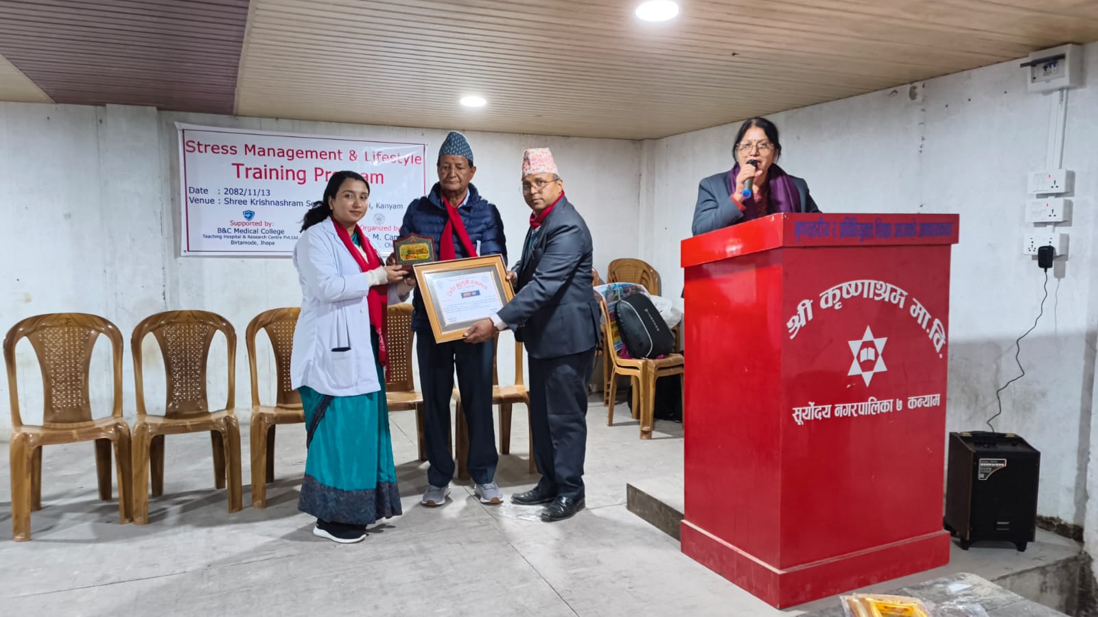 श्री कृष्णाश्रम माध्यमिक विद्यालयको सभाहलमा आयोजित तालिममा सूर्योदय नगरपालिका क्षेत्रका तीन माध्यमिक विद्यालयका कक्षा ११ र १२ मा अध्ययनरत करिब ९० विद्यार्थी सहभागी थिए। कार्यक्रममा प्राध्यापक सेलिनाश्री तिमल्सिनाले विद्यार्थी उमेरमा देखिने तनाव, त्यसका कारण र व्यवस्थापनका उपायबारे सहजीकरण गरेका थिए।