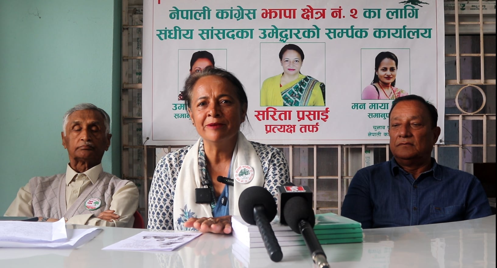 झापा । नेपाली काँग्रेस झापा क्षेत्र नम्बर–२ की प्रत्यक्षतर्फ उम्मेदवार सरीता प्रसाईंले आफूले क्षेत्रका मतदाताको मन जितिसकेको दाबी गर्दै अब मतबाट पनि विजयी हुने विश्वास व्यक्त गरेकी छन्।