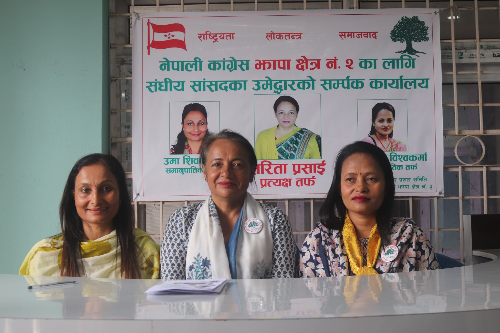 कार्यक्रममा नेपाली काँग्रेसका केन्द्रीय सदस्य सुधिरकुमार शिवाकोटी, कोशी प्रदेश सभापति उद्धव थापा तथा झापा सचिव कृष्ण हुमागाईले प्रत्यक्षतर्फकी उम्मेदवार सरीता प्रसाईं र समानुपातिकतर्फका उम्मेदवार उमा शिवाकोटी तथा मनमाया विश्वकर्मालाई विजयी गराउने प्रतिबद्धता व्यक्त गरे।