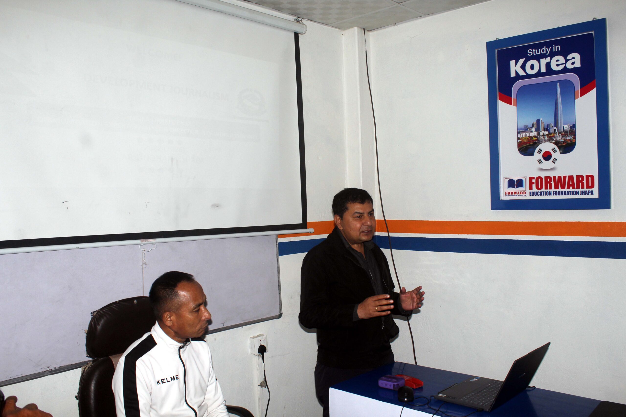 स्थानीय फर्वार्ड एजुकेशन फाउण्डेशन झापा प्रा.लि.को सभाहलमा वडा अध्यक्ष कुमारप्रसाद उप्रेतीको अध्यक्षतामा कार्यक्रम आयोजना गरिएको हो। कार्यक्रमको उद्घाटन सञ्चार विज्ञ तथा नेपाल टेलिभिजनका च्यानल प्रमुख डा. टंक उप्रेतीले गरेका थिए।