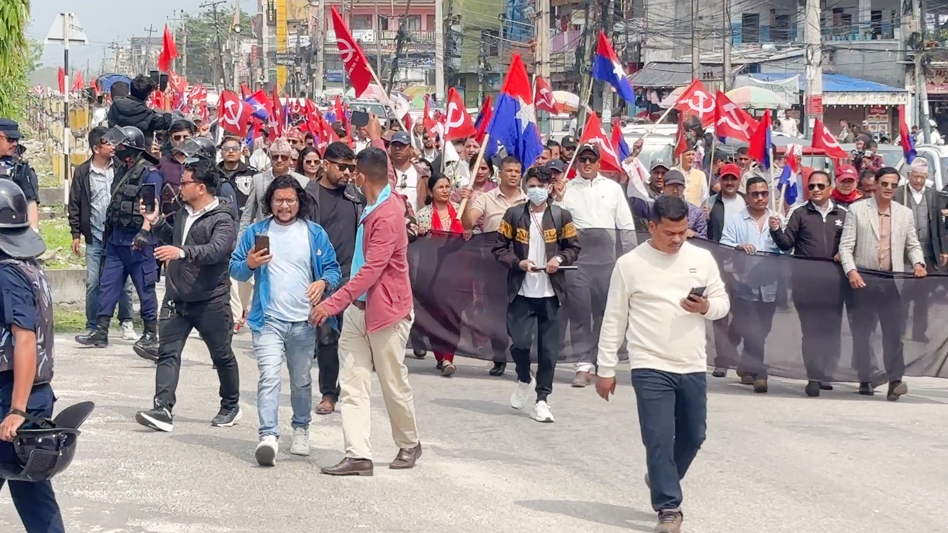 नेकपा एमाले झापाले बिर्तामोडस्थित जिल्ला पार्टी कार्यालयबाट निकालिएको बिरोध ¥यालीले बिर्तामोड नगरपरिक्रमा गर्दै मुक्ति चोकमा आएर कोण सभामा परिणत भएको थियो ।