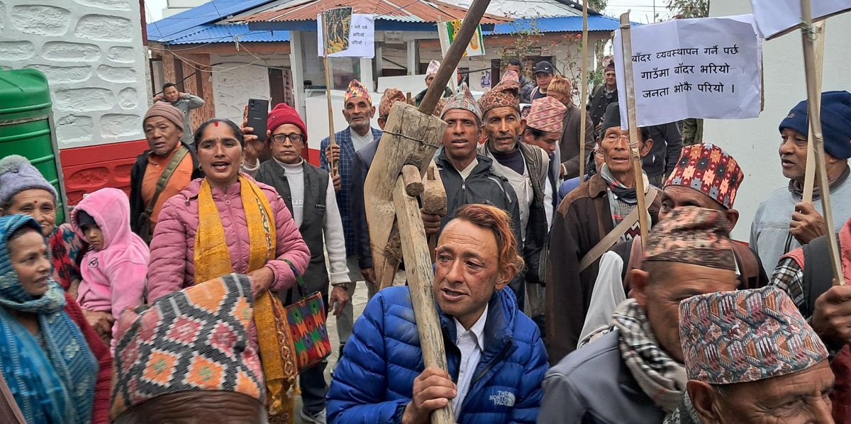 बाँदरपीडित किसानले आज कृषि औजारसहित सदरमुकाम दिक्तेल बजारमा विरोध प्रदर्शन गरेका छन् । बाँदर नियन्त्रणको भरपर्दो उपाय खोजी गर्न सरकारसमक्ष माग गर्दै किसानहरुले हलो, जुवा, दाँते र कोदालोसहित आज प्रदर्शन गरेका हुन् ।