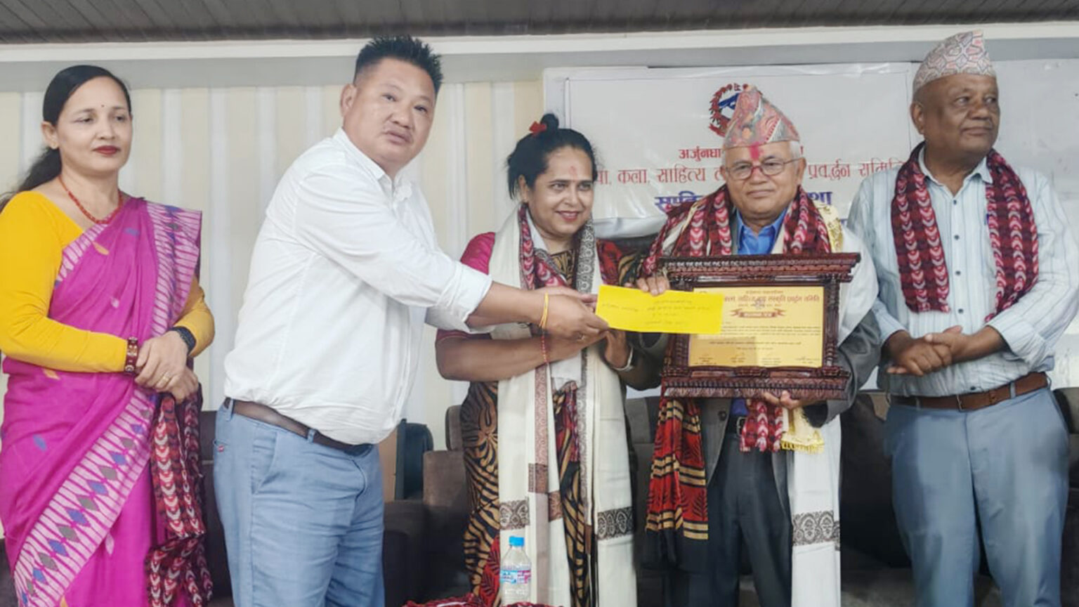कार्यक्रममा वरिष्ठ साहित्कार प्रकाश बुढाथोकी, नगरप्रमुख बलदेवसिंह गोम्देन तामाङ, उपप्रमुख खड्गमाया पराजुलीलगायतले सम्मानपत्र हस्तान्तरण गर्नुभएको थियो ।