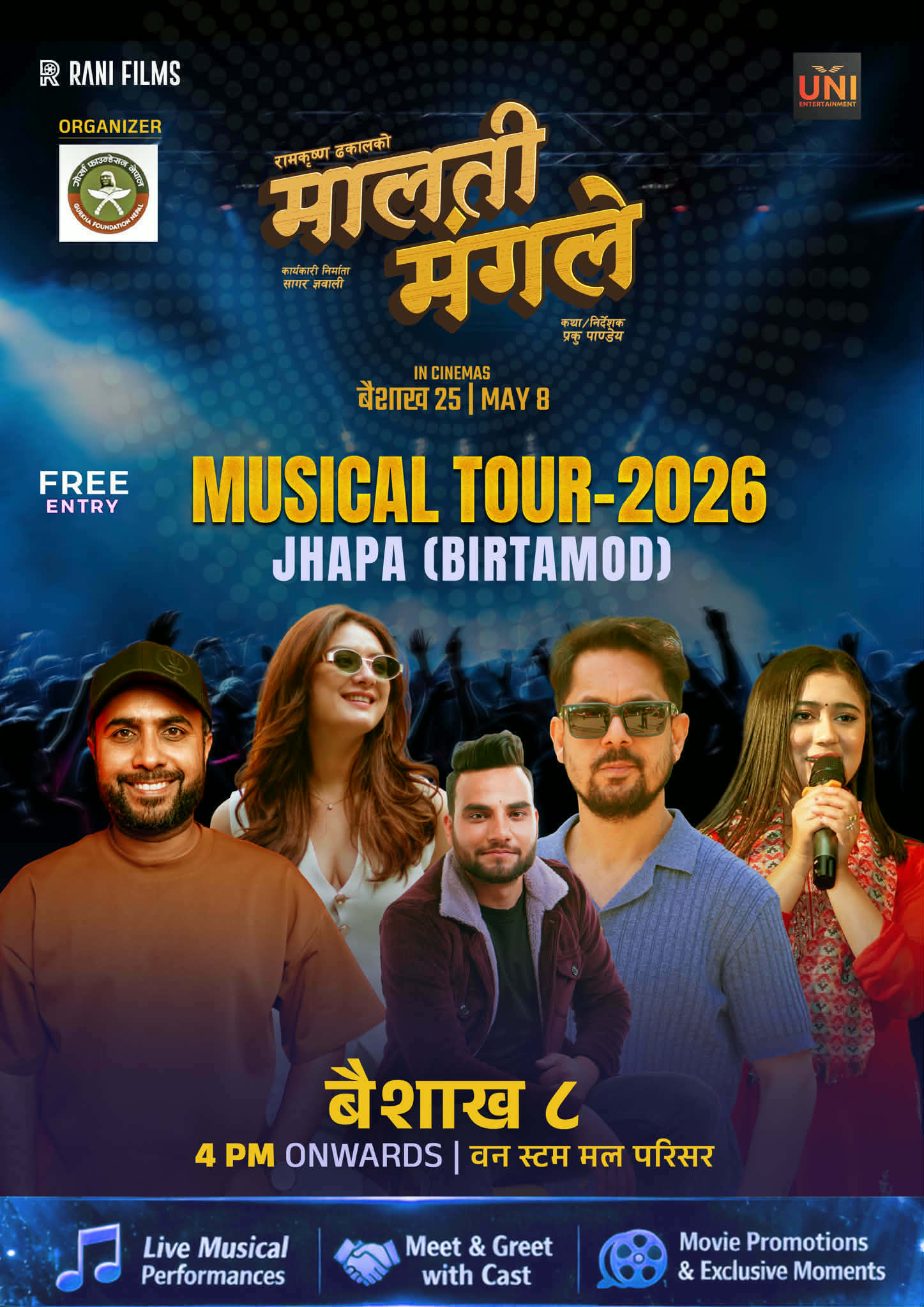 मंगलबार बेलुका ४ बजे हुने उक्त कार्यक्रमकै अवसरमा गायक ढकालको प्रस्तुती रहेको मालती मंगली चलचित्रको बारेमासमेत दर्शकलाई जानाकारी दिने जनाईएकोछ । वैशाख २५ गतेदेखि एकैसाथ देशभर उक्त चलचित्र प्रदर्शनमा आउने भएकोछ ।