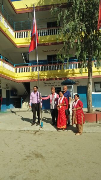 बिद्यालयका संस्थापक अध्यक्ष खड्गराज गिरीको अध्यक्षतामा भएको कार्यक्रममा नगरपालिकाका प्रवत्ता सकुन्तला वरालको आतिथ्ययता रहेको थियो । कार्यक्रममा बिद्यालयका कक्षा–७ मा अध्ययनरत मनोज तिवारीले संविधानका विषयमा आफ्नो विचार प्रस्तुत गरेका थिए । प्रमुख अतिथि गुरुङले संविधानलाई कसरी कार्यन्वयन, व्यवस्थित र मर्यादित बनाउँन सकिन्छ त्यसका लागि नगरले संविधान दिवसको अवसरमा विविध कार्यक्रम आयोजना गरेको बताए । नगरका निजि तथा सामुदायिक बिद्यालयमा जनप्रतिनिधिको उपस्थितिमा राष्ट्रिय झण्डा वितरण साथै अतिरिक्त क्रियाकलाप गरेको गुरुङले जानकारी दिए ।