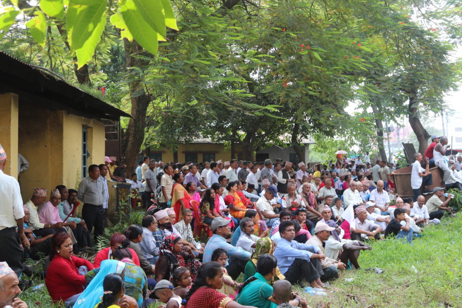 नेकपा नेताहरु हरिचरण शिवाकोटी, अर्जुन राई, देवेन्द्र दाहाल, प्रेम गिरी, झलकसिंह दर्लामी, श्रीप्रसाद मैनाली सोमनाथ पोर्तेल, एकराज कार्की, हरि राजवंशी, हीराकुमार थापा लगायतको आतिथ्य रहेको पार्टी एकीकरणपछिको पहिलो जिल्लास्तरीय जनसभामा ठूलो संख्यामा पार्टी कार्यकर्ता, विभिन्न तहका जनप्रतिनिधि तथा जनसमुदायको सहभागिता रहेको थियो । कार्यक्रमको सञ्चालन नेकपा झापा सचिव मणिकुमार साम्पाङ (विजय) ले गरेका थिए ।