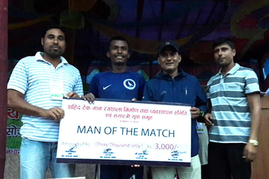 खेलको म्यान अफ दी म्याच चन्द्रगढीका प्रमोद चौधरी घोषित भए । उनलाई झापा ११ एफसीका महासचिव केशवराज दाहाल र आयोजक क्लबका अध्यक्ष कृष्ण लोहारले नगद ३ हजार पुरस्कार प्रदान गरे ।