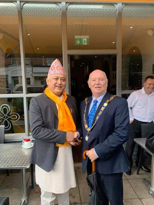 त्यहाँ आयोजित कार्यक्रममा नगरप्रमुख आचार्यले विशिष्ट अतिथिको आसनबाट बोल्दै नेपाल र बेलायत तथा नेपाली र बेलायती जनताबीचको सम्बन्ध धेरै अगाडीदेखि समधुर रहेकाले अझ यो सम्बन्धलाई प्रगाढ बनाएर लैजाने विश्वास व्यक्त गरे ।