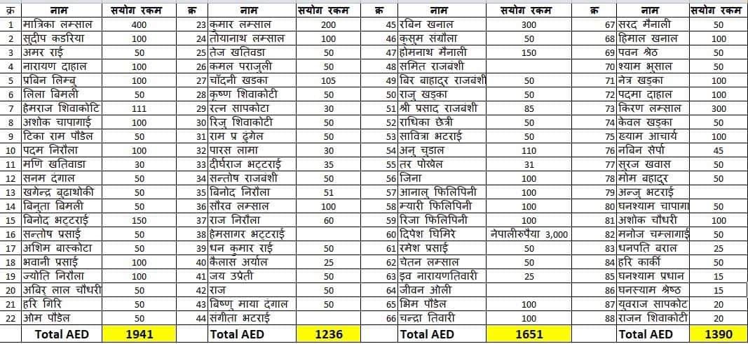 | 22 | HARI PRASAD CHAMLAGAI | QAR 500.00 | DANGIBARI | DEEPAK |