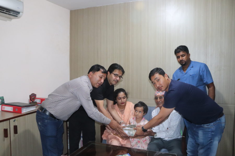 व्यवसायी संघ कतारका अध्यक्ष तथा अन्तराष्ट्रिय झापाली समाजका प्रवत्ता समेत रहनु भएका महेन्द्र चम्लागाईको नेतृत्वमा ६ लाख ७१ हजार ३ सय ८९ रुपैयाँ मृतककी छोरी समिरा लम्सालको पढाई खर्चका लागि भन्दै आज प्रदान गरियो ।