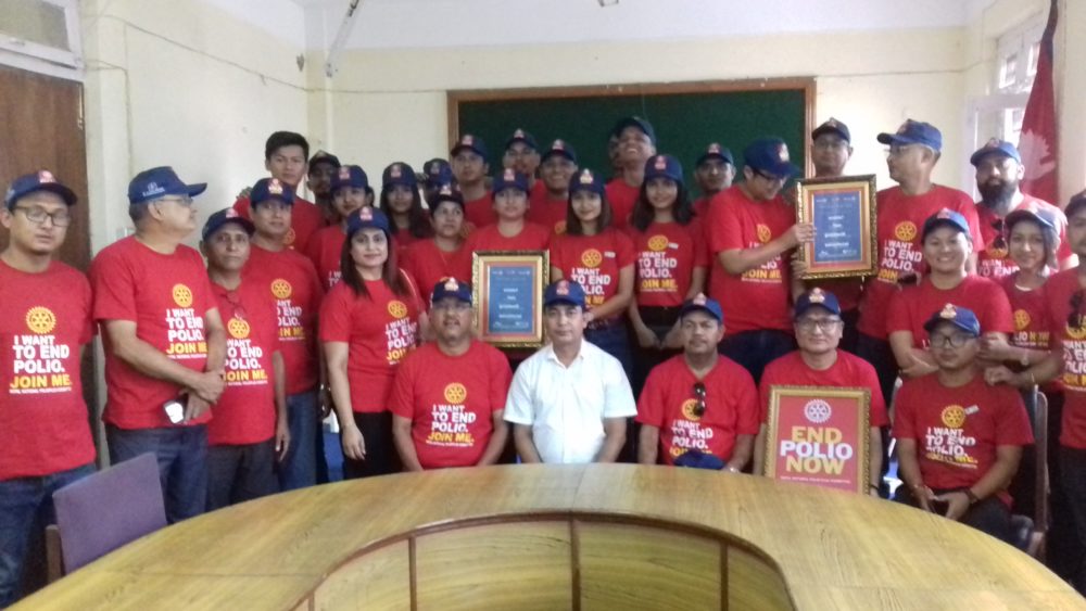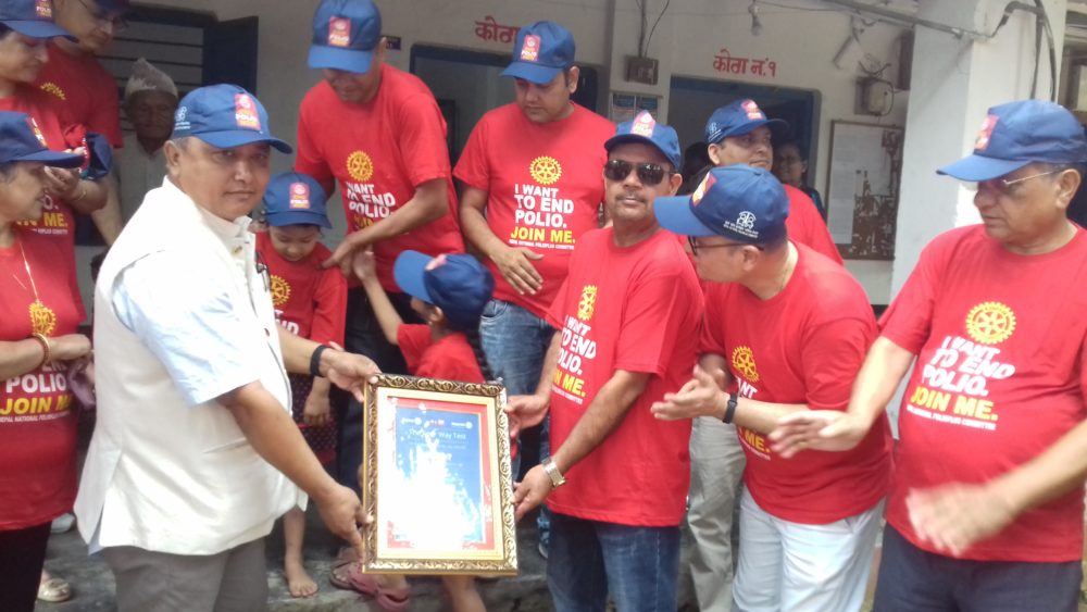 कार्यक्रममा बोल्दै वरिष्ठ प्रशासकिय अधिकृत वस्ती तथा वडानम्बर—६ का वडाध्यक्ष तामाङले रोटरीले पोलियो निवारणमा देखाएको भूमिका सह्रानिय भएको बताउँदै उस्का हरेक कार्यक्रममा सहयोग गर्ने प्रतिवद्घता व्यक्त गर्नुभयो । पोलियो उन्मुलनका लागि आफ्नै सदस्यबाट चन्दा उठाउने, चन्दाको लागि अन्य दातृ संस्थाहरुलाई उन्मुख गर्ने, सामुदायिक स्तरमा स्वयमसेविहरु परिचालित गर्ने र पोलियो विरुद्ध जागरण अभियान गर्ने पोलियो उन्मुलनमा रोटरीका चार कसिरहेको अध्यक्ष निरौलाको भनाई थियो । यस कार्यको लागि रोटरीबाट १ दशमलव ६ अर्ब डलर उठाउनुका साथै अन्य दातृ संस्थाबाट समेत गरि ७ दशमलव २ अर्ब डलर उपलब्ध गराइसकेको छ ।
