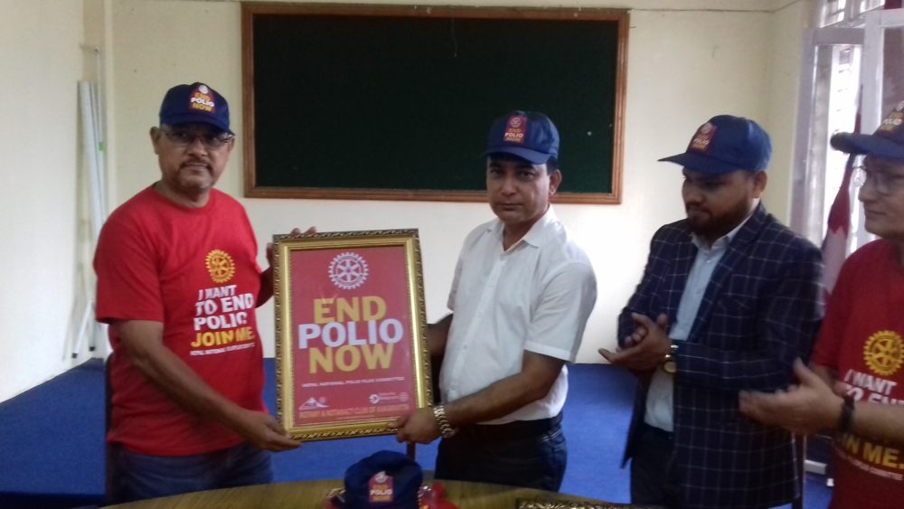 यसै अवसरमा रोटरी क्लब अफ काँकरभिट्टाले विविध कार्यक्रम आयोजना गरेको हो । काँकरभिट्टा रोटयाक्ट क्लबको सहयोगमा सम्पन्न कार्यक्रममा स्थानीय स्तरबाटै पोलियो उन्मुलन गर्न आवश्यक भूमिका निर्वाह गर्नुपर्ने भन्दैं क्लबले मेचीनगर नगरपालिकामा ‘इण्ड पोलियो नावो’ तथा ‘द फोर वे टेस्ट’ लेखिएका दुई अलग अलग वोर्ड स्थानीय सरकारलाई प्रदान गरेको छ ।