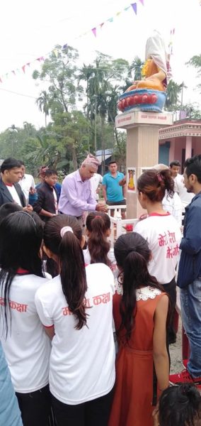 राष्ट्रियता संरक्षण युवा मञ्चद्वारा सञ्चालित मर्यादा कक्षाका विद्यार्थीहरूले बैदिक मन्त्रको उच्चारण गरी अनावरण गरिएको कार्यक्रममा राष्ट्रियता संरक्षण युवा मञ्चका कोषाध्यक्ष जीवन रिजालले औचित्यसहित बुद्ध स्तम्भ निर्माणको आय व्यय प्रस्तुत गरेका थिए ।