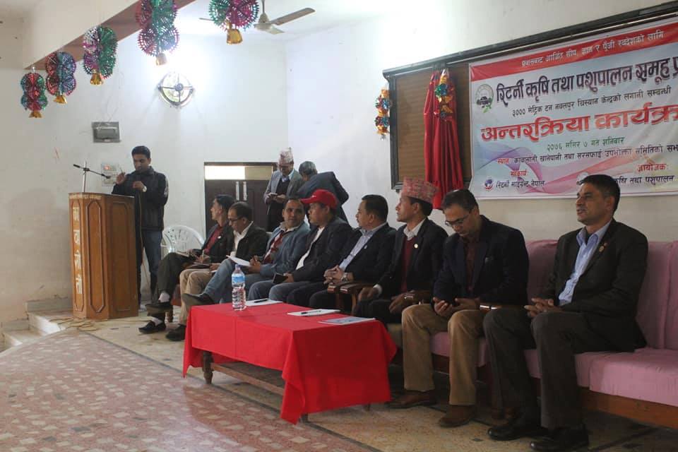 वैदेशिक रोजगारबाट फर्किएका युवाहरूको संगठन रिटर्नी कृषि तथा पशुपालन समूह लिमिटेडले चिस्यान केन्द्र निमार्णमा लगानी गर्ने तयारी गरेको हो । ३ हजार मेट्रिक टन क्षमताको उक्त चिस्यान केन्द्रको शेयर खुला हुनुअघि मंगसिर ८ गते सातवटै प्रदेशका अगुवा पुर्व प्रवासीहरुको उपस्थितिमा अन्तरक्रिया कार्यक्रम सम्पन्न भएको छ ।