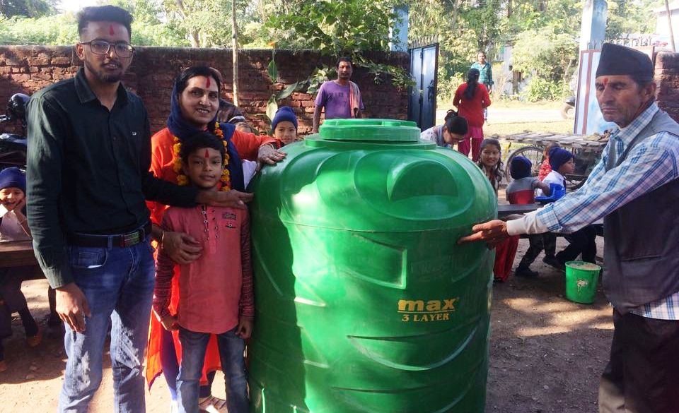 वैवाहिक वर्षगाँठमा अग्रवाल दम्पत्तीले दिए विद्यालयलाई पानी ट्याङकी