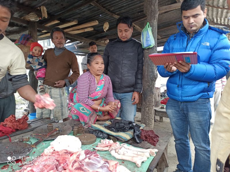 नगरको उपभोक्ता हित संरक्षण समिति र बजार अनुगमनको संयुक्त समितिले मासु बजारको अनुगमन गरेको हो । स्थानीयले उपभोक्ताले मासु बजारमा प्रयोग हुने परम्परागत तराजु, गुणस्तर र मुल्यमा एक रुपता नभएको भन्दै नगरमा गुनासो आएपछि समितिले छड्के अनुगमन गरेको हो ।