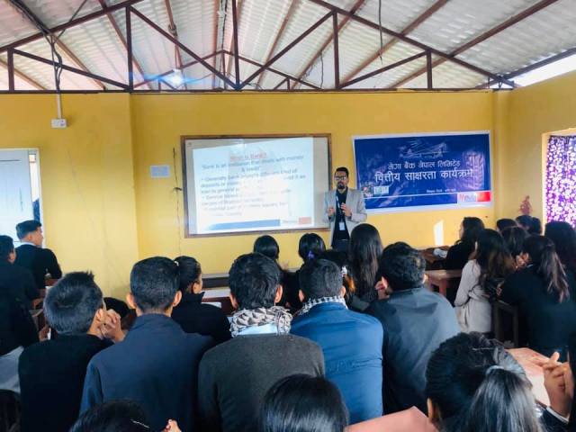 मेगाबैकले देशका बिभिन्न स्थानहरुमा बित्तीय साक्षरता कार्यक्रम गर्दैआइरहेको छ ।  विद्यालयमा भएको कार्यक्रम बैककाकर्मचारी दिनेश पनेरुले सञ्चालन थिए भने कार्यक्रममा एक सय जना विद्यार्थीको सहभागीतारहेको बताइएको छ ।