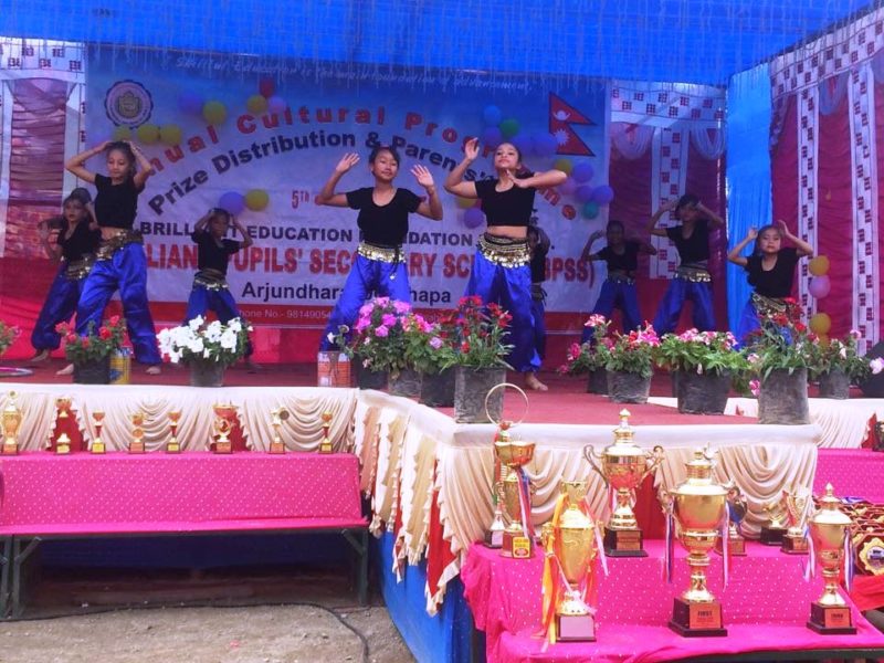 झापाको अर्जुनधारा–६ स्थित ब्रीलीयन्ट प्यूपल्स सेकेण्डरी स्कुलको वार्षिक सांस्कृतिक कार्यक्रम, पुरस्कार वितरण तथा अभिभावक भेला–२०७६ सोमबार सम्पन्न भएको छ ।