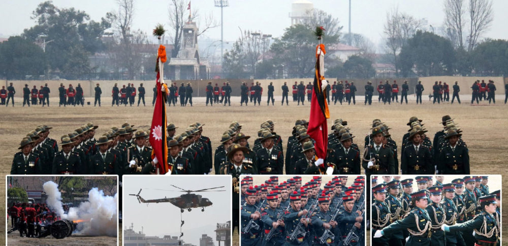 कार्यक्रमलाई रोमाञ्चक तुल्याउने क्रममा सैनिक मञ्चमा मास पिटी प्रस्तुत गरियोे । त्यसअन्तर्गत पिटी, तेक्वान्दो, खुकुरी ड्रिल प्रस्तुत भयो । नेपाली सेनाको व्यावसायिक कार्यकुशलतालाई झल्काउने केही सैनिक कौशलसमेत प्रस्तुत भएको थियो ।