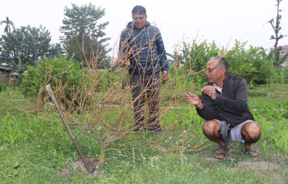 सुरुमा लटरम्म फल लागेका कागतीका बोटको मुना र पात पहेंलिँदै जाने र पछि डाठ नै सुकेर जान थालेपछि कृषि प्राविधिकलाई देखाएको तर उनीहरुले पनि के कारण कागती मरेको हो भन्न नसकेको उप्रेती बताउँछन् ।