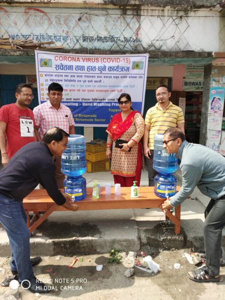 त्यस्तै बिर्तामोडमा रहेको अमृता मेडिकोले लायन्स क्लवसंग सहकार्य गर्दै बिर्तामोडमा दुई साता अघि देखि नै हात धुने पानीको व्यवस्था गरेको छ । जनचेतना प्रदान गर्दै संस्थाले हात धुँदा सावुन पानीले हात धुनु पर्ने र सेनिटाइजरको प्रयोग गर्नु पर्ने भन्दै चेतना प्रवाह गरिरहेको छ ।