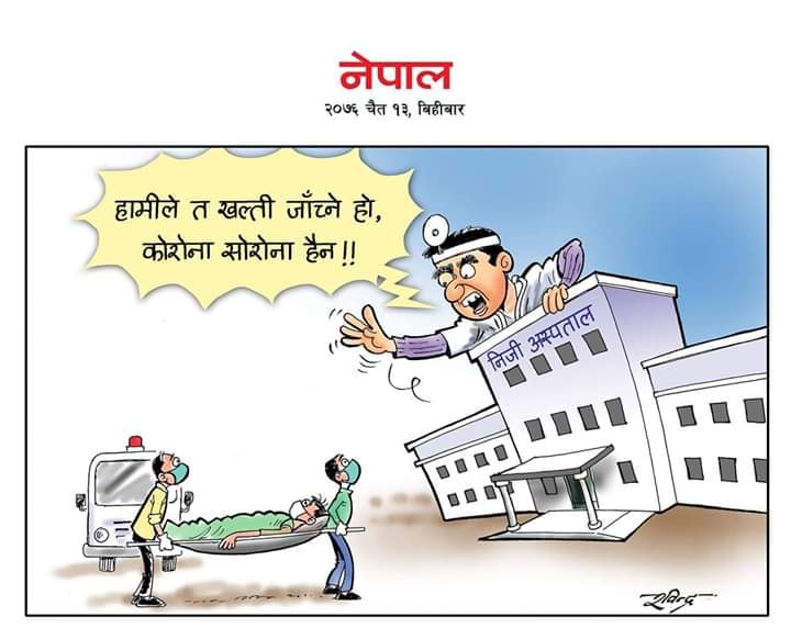 – अस्पताल चाहे निजी वा सरकारी ती नागरिकका सेवाका लागि हुन् । सहज वा असहज जुन सुकैबेला पनि नागरिकको सेवामा समर्पित हुन जरुरी छ तर झापाका केही निजी अस्पतालहरु जुन हर्कत देखाए त्यसलाई हामीले नजिकबाट अवलोकन गरेका छौ । सहजबेलामा नाफाका लागि लुछाचुडी गर्नेहरुको भाग्ने भागको अवस्था पनि देखियो ।