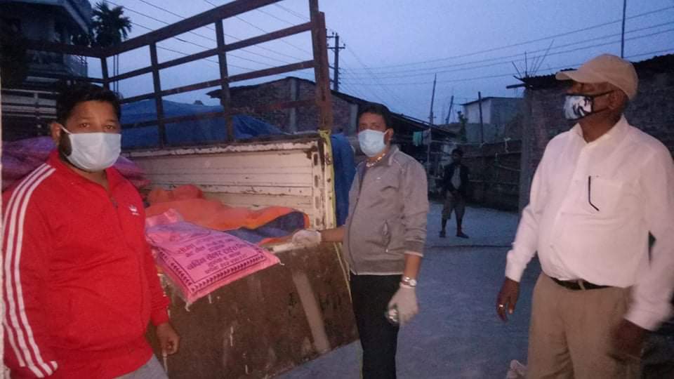 झापा गाउँपालिकाले राहत वितरणमा एकद्वार प्रणाली लागू गरेपछि गाउँपालिका मार्फत वडा नम्बर ४ टाघनडुव्वाका विपन्न, अपाङ्ग, असहाय, दैनिक ज्यालादारी गर्ने मजदुरको परिवारलाई वितरण गरिएको वडाध्यक्ष भारतीले बताए ।