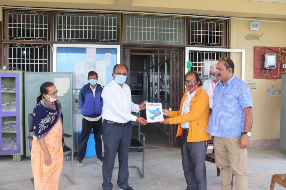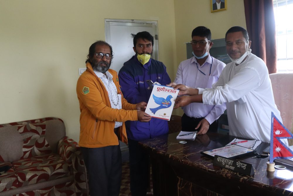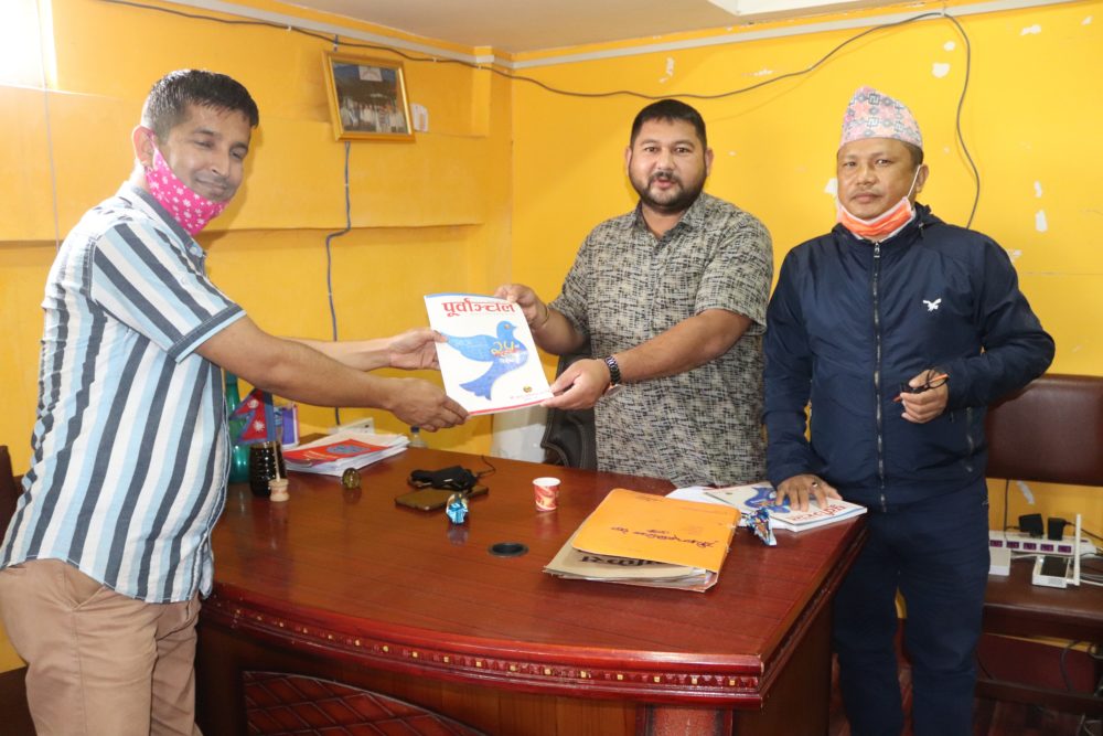 पूर्बाञ्चल दैनिकले रजत वर्षको अवसरमा प्रकाशन गरेको विशेषाङ्क गौरीगञ्ज गाउँपालिका प्रमुख प्रशासकीय अधिकृतलाई प्रदान गर्नु हुँदै पूर्वाञ्चल दैनिकका सह व्यवस्थापक होमप्रकाश अधिकारी ।
