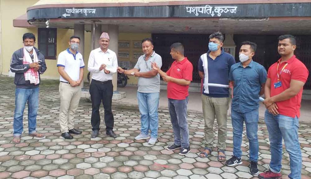 निर्माण व्यवसायी संघ झापाले कोरोना परीक्षण प्रयोगशाला (पीसीआर ल्याब) निर्माणका लागि एक लाख एक हजार रुपैयाँ प्रदान गरेको छ ।