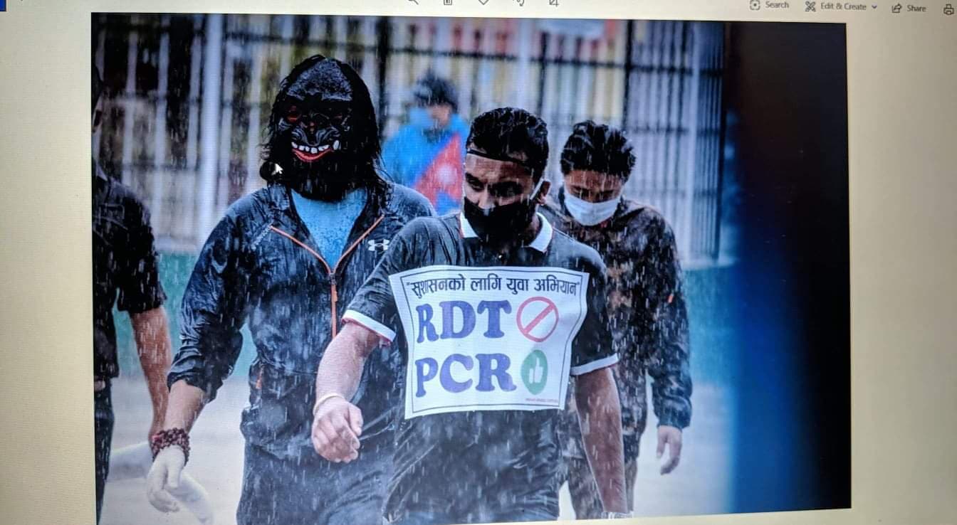 उनीहरुले भ्रष्टचार गर्नेलाई कारबाही गर्नुपर्ने तथा पिसिआर परीक्षणको दायर बढाउनु पर्ने बिषय समेटिएका प्लेकार्ड बोकेका थिए ।
