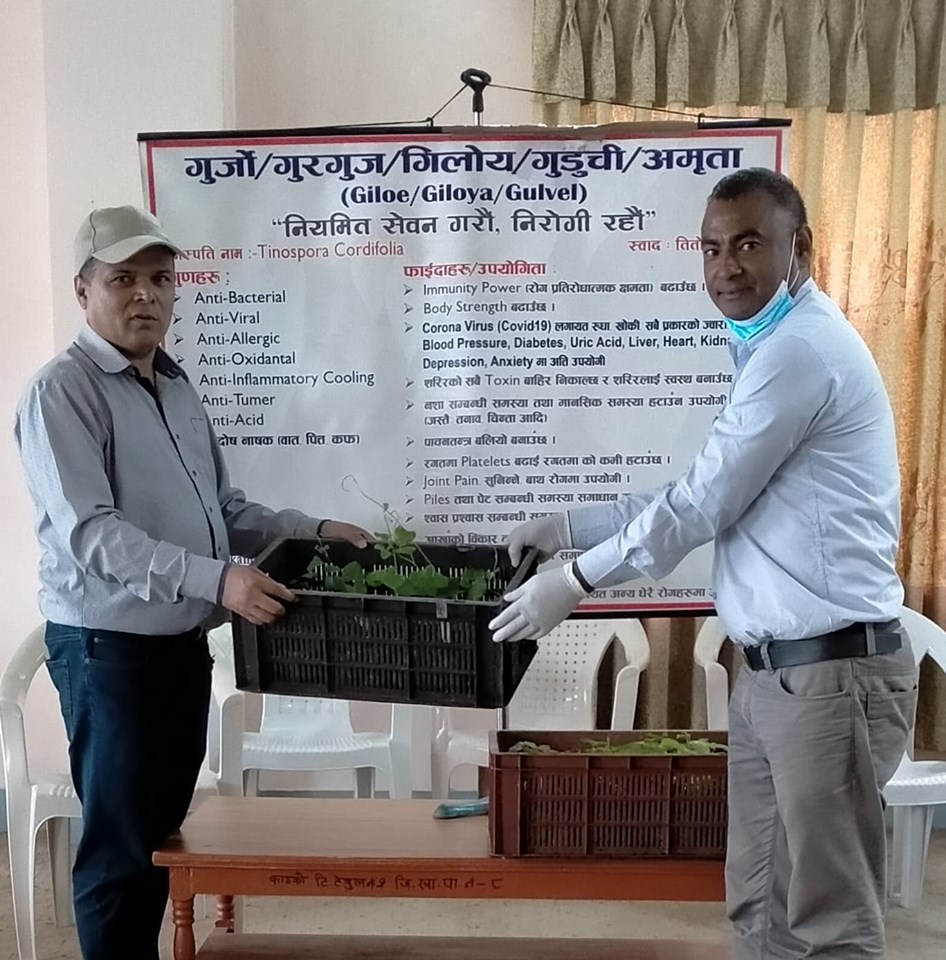 आन्तरिक राजस्व कार्यालय लाहानमा कार्यरत राजलवटले गुर्जो हस्तान्तरण गर्दै यो बहुउपयोगी औषधी शुरुमा एकलाख बेर्ना वितरण गर्ने लक्ष भएतापनि अब आवश्यकता पर्नेहरुलाई निशुल्क वितरण गरिने बताउनुभयो ।
