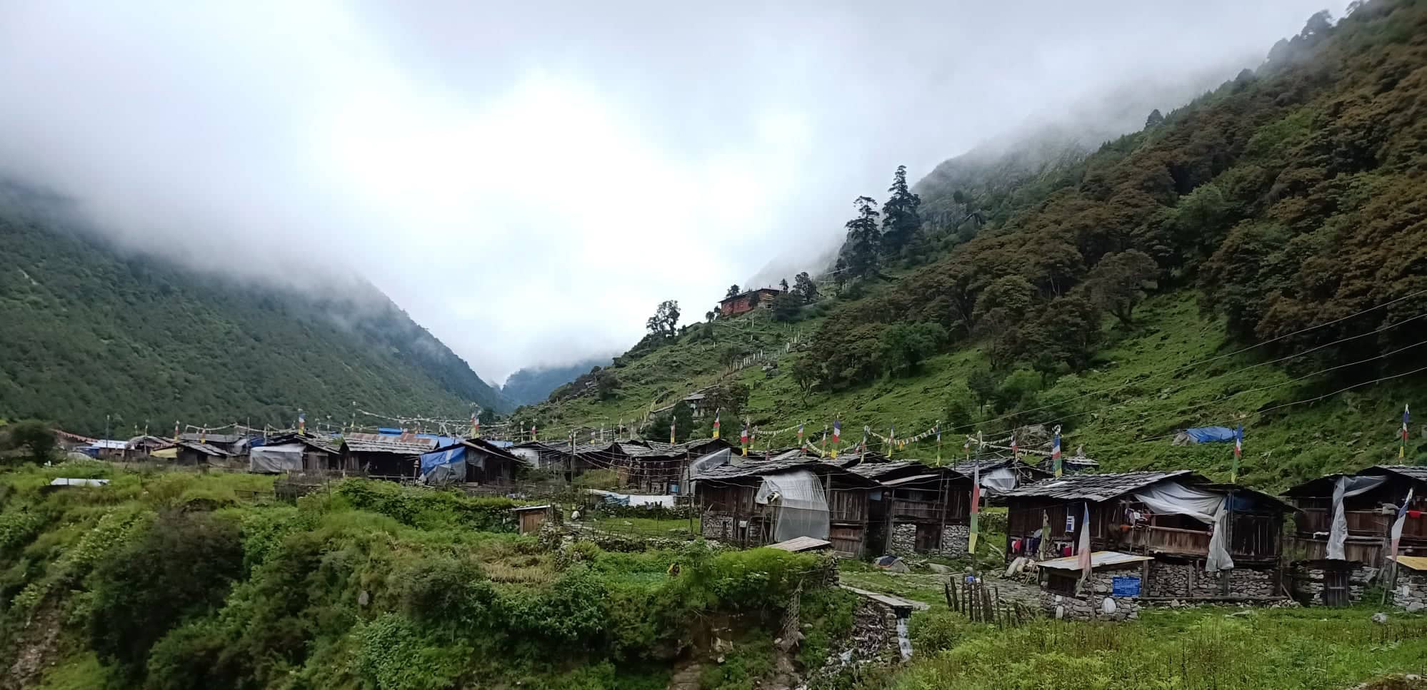 यहाँबाट मानवबस्तीबिहीन करिव ३५ किलोमिटर दूरी पार गरेपछि नेपाल–तिब्बत सीमा नाका तिप्ता ला भञ्ज्याङ (उचाइ ५१०० मिटर) पुगिन्छ । यो गाउँ आर्थिक र सांस्कृतिक रूपमा तिब्बतसँग निकै निकट सम्पर्कमा रहेको छ । सडक सञ्जालबाट जोडिने क्रममा रहेको गोला गाउँ पुग्न अहिलेसम्म त कठिन पदयात्रा नै गर्नुपर्छ ।