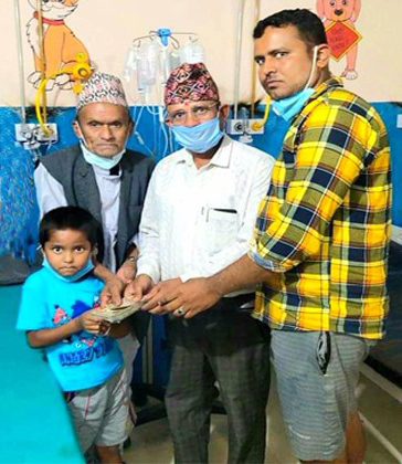 आर्थिक अभावमा अस्पतालमै छटपटाईरहेका बालक गजेन्द्रको जीवन रक्षार्थ उपचारको लागि झापाली समाज कुवेतले ३१ हजार रुपैयाँ सहयोग गरेको झापाली समाज कुवेतका महासचिब प्रसाद तिम्सिनाले जानकारी दिए ।