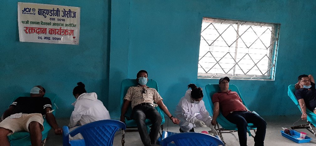 बाहुनडाँगी जेसीजको १० औँ स्थापना दिवसमा अवसरमा शुक्रबार भव्य रक्तदान कार्यक्रम सम्पन्न भएको छ । नोवल कोरोना भाइरस कोभिड १९ का कारण अहिले विश्व बन्दाबन्दीको अवस्थामा रक्त बैंकहरुमा रगतको अभाव नहोस भन्ने उद्घेश्यले आफ्नो स्थापना दिवसका अवसरमा रक्तदान कार्यक्रम आयोजना गरिएको बाहुनडाँगी जेसीज सन् २०२० का अध्यक्ष सागर कार्कीले बताउनुभयो ।